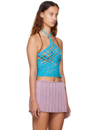 Handcrafted braided stretch acrylic boucle tank top. Halter neck. Supplier color: Teal 90% acrylic, 10% elastane. Made in Indonesia 222541F111006