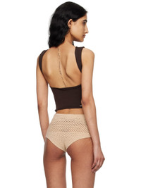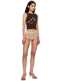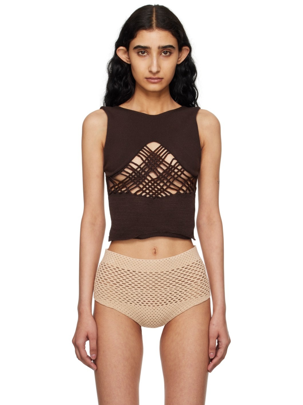 Handcrafted rib knit stretch rayon tank top. · Boat neck · Crocheted detailing at chest · Low back Supplier color: Soil