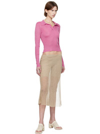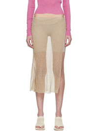 Sheer knit stretch rayon midi skirt. · Wrap construction · Elasticized waistband · Slit at side seam · Integrated rib-knit shorts-style underlay · Logo patch at back waist Supplier color: Bleach 90% rayon, 10% elastane. Made in Indonesia 251541F090001