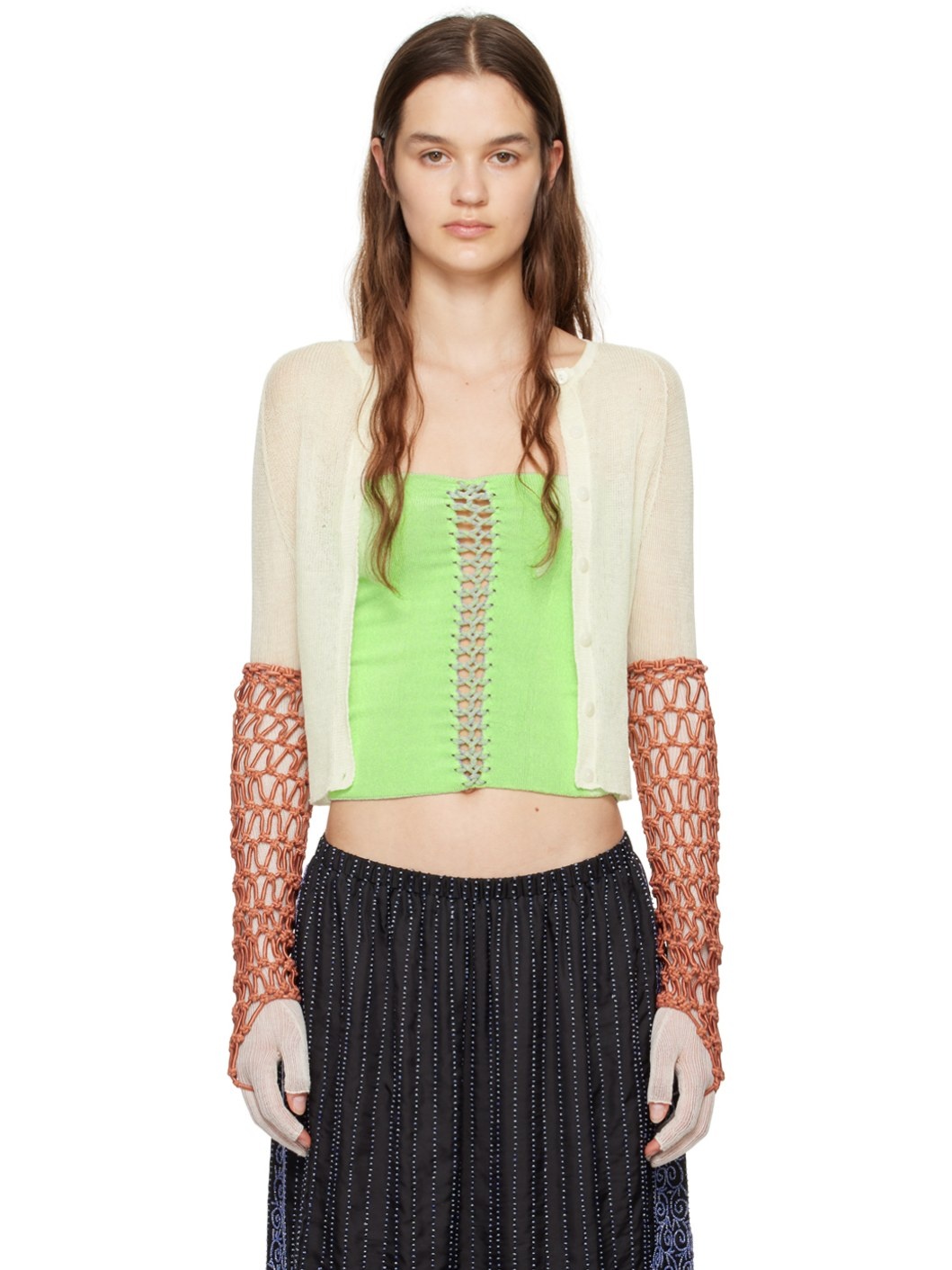 Handcrafted stretch nylon fishnet shrug-style gloves in orange. · Knotted accents throughout · Self-tie strap at end Supplier color: Rust 75% nylon, 25% elastane. Made in Indonesia 241541F012009