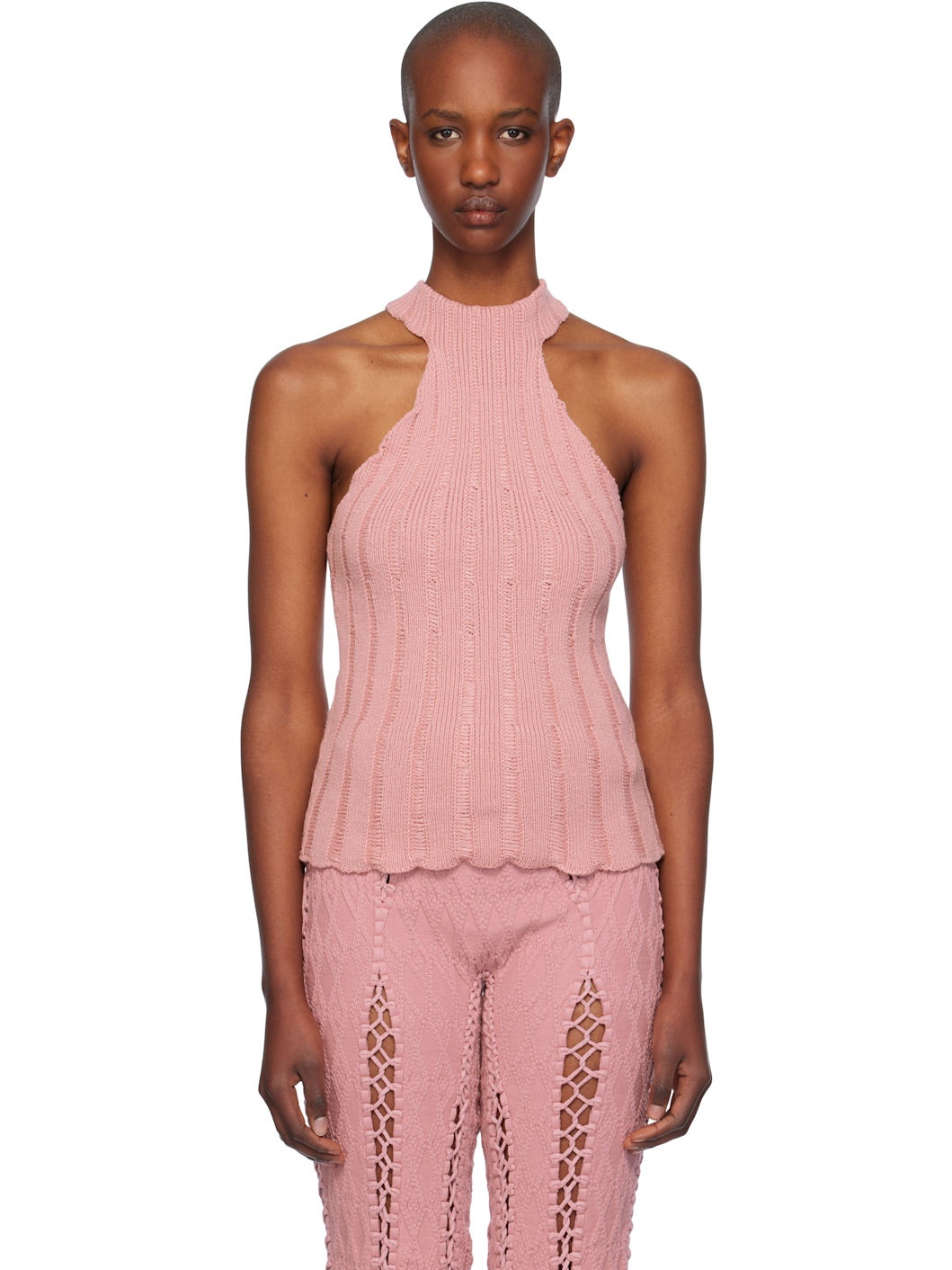 Rib-knit acrylic tank top. · Halter neck · Logo flag at hem Supplier color: Soft pink 100% acrylic. Made in Indonesia 242541F099000