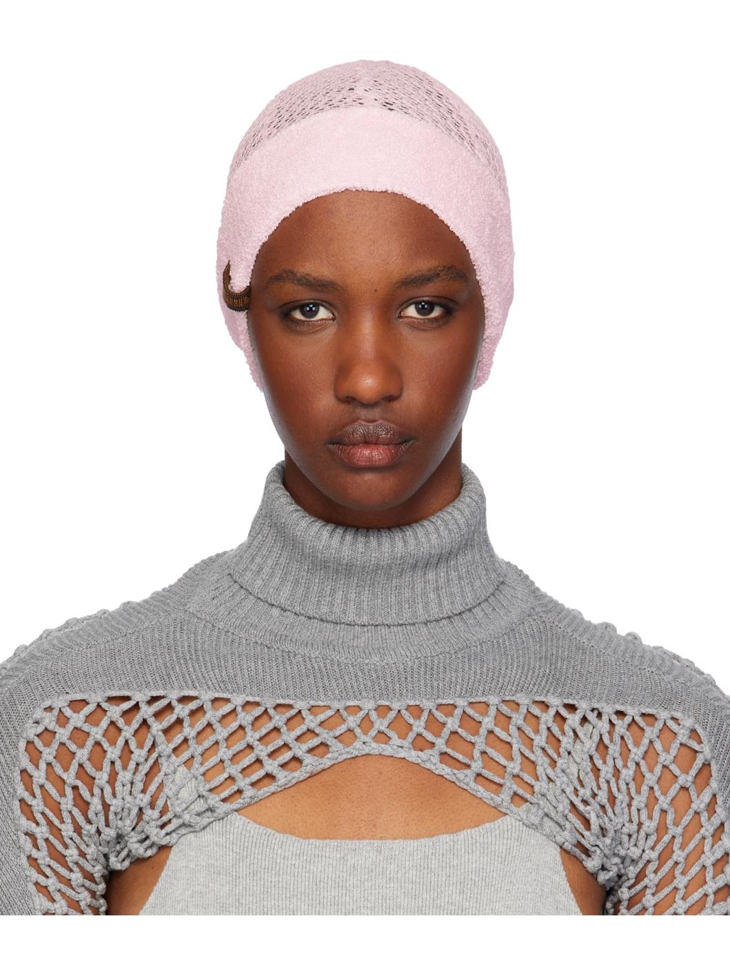 Fishnet-knit cotton beanie in pink. Logo patch at terrycloth brim. Supplier color: Soft pink 100% cotton. Made in Indonesia 242541F014000