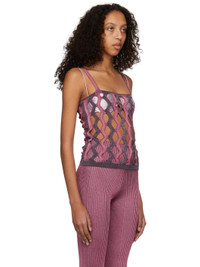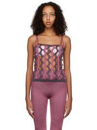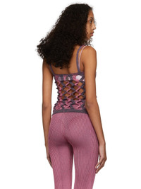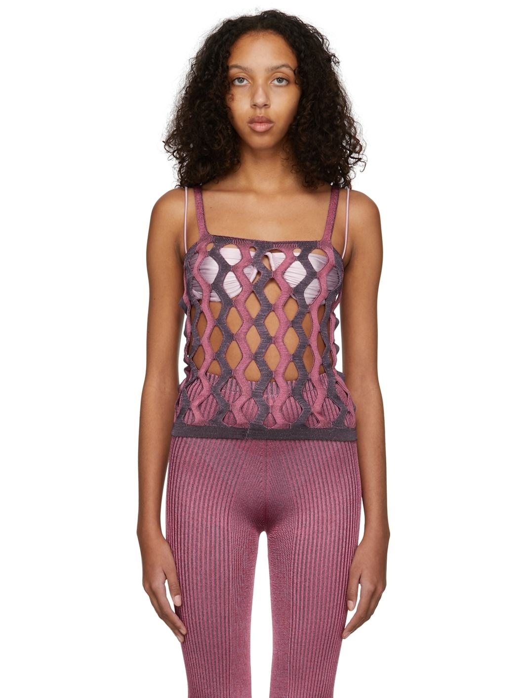 Sleeveless stretch rib knit tank top striped in pink and purple featuring signature cut-out pattern throughout. Marled detailing throughout. Supplier color: Magenta 90% rayon, 10% elastane. Made in Indonesia 221541F111008