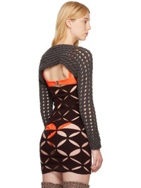 Handcrafted knit stretch acrylic shrug-style gloves in gray. Braided construction. Available exclusively at SSENSE. Supplier color: Slate 90% acrylic, 10% elastane. Made in Indonesia 222541F012013
