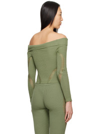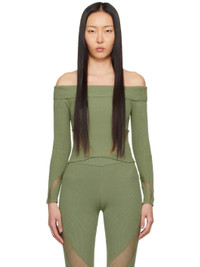 Rib knit cotton T-shirt. Laddering throughout. · Off-the-shoulder construction · Fold-over panel at straight neck Available exclusively at SSENSE. Supplier color: Seafoam 100% cotton. Made in Indonesia 241541F096002