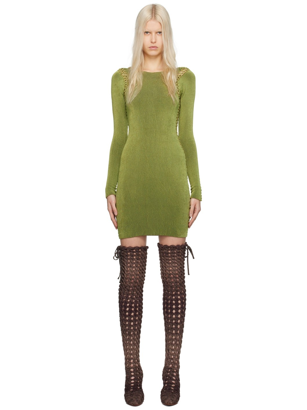 Hand-rib knit stretch rayon dress. · Paneled construction · Braided detailing throughout · Boat neck Wholesale exclusivity at SSENSE. Supplier color: Seafoam 90% rayon, 10% elastane. Made in Indonesia 241541F052012