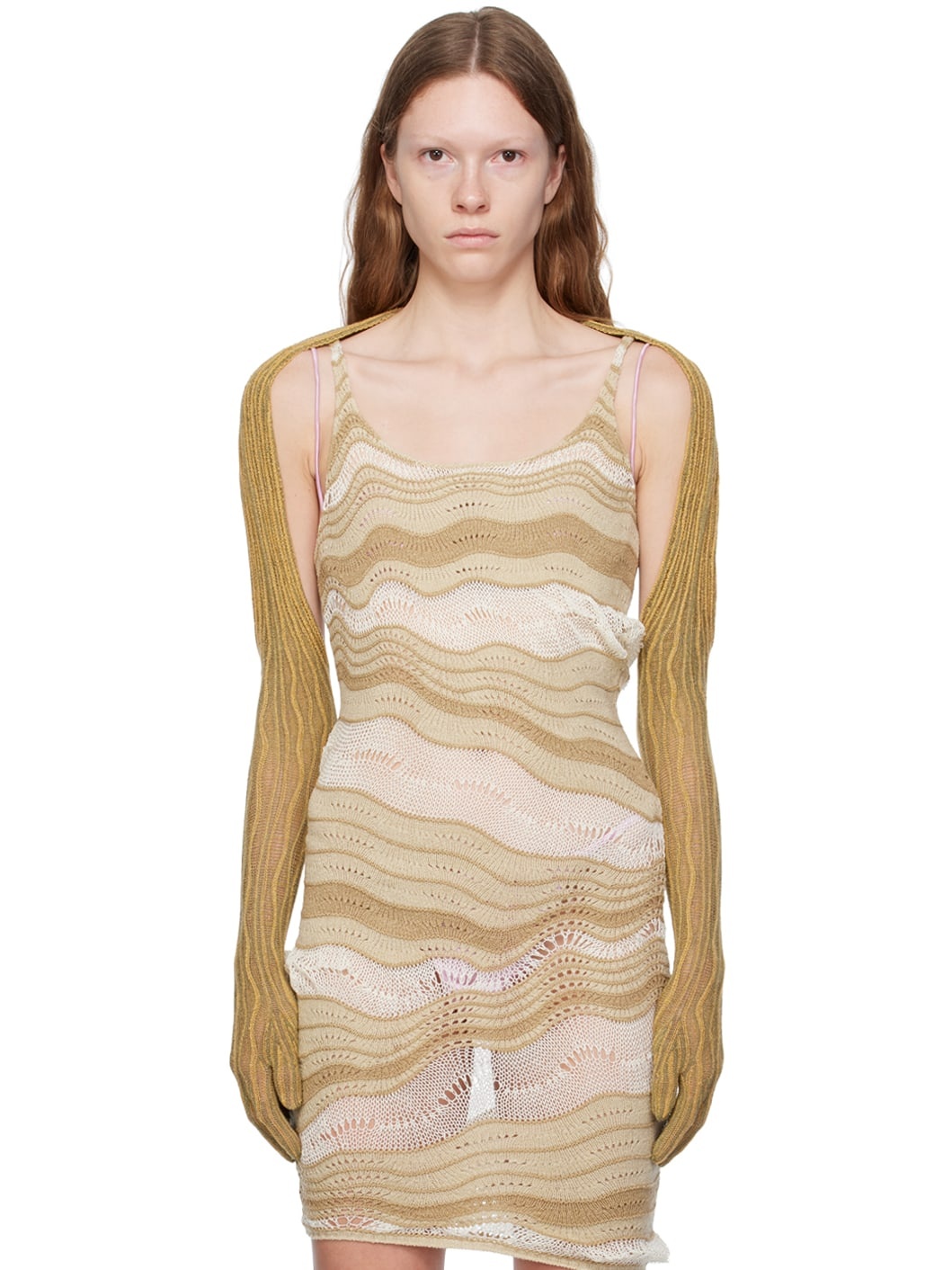 Handcrafted rib knit stretch rayon boler-style gloves. · Stripes throughout · Halterneck Available exclusively at SSENSE. Supplier color: Soil orange 90% rayon, 10% elastane. Made in Indonesia 232541F012004