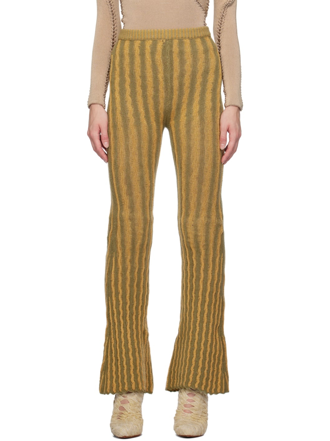 Handcrafted rib knit stretch acrylic lounge pants. · Stripes throughout · Elasticized waistband Available exclusively at SSENSE. Supplier color: Burlap orange 90% acrylic, 10% elastane. Made in Indonesia 232541F086010