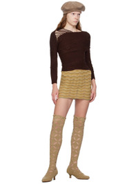 Handcrafted open knit stretch acrylic skirt. Stripes throughout. · Rib knit elasticized waistband and hem · Detachable brief-style underlay · Scalloped edge at hem Available exclusively at SSENSE. Supplier color: Burlap orange 90% acrylic, 10% elastane. Made in Indonesia 232541F090003