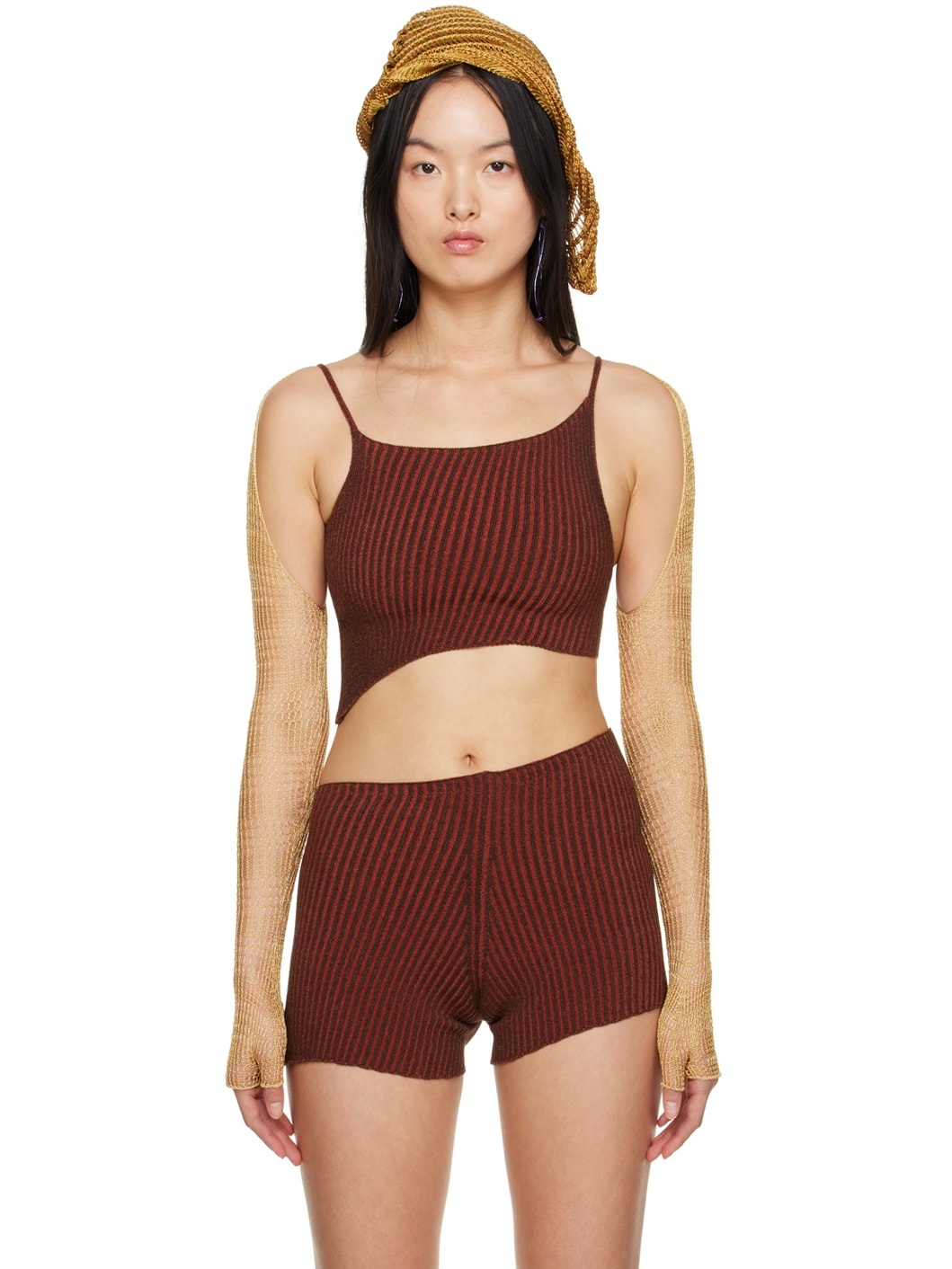 Handcrafted rib knit stretch acrylic tank top. · Asymmetric neck and hem · Fixed spaghetti straps Available exclusively at SSENSE. Supplier color: Halloween 90% acrylic, 10% elastane. Made in Indonesia 231541F111029