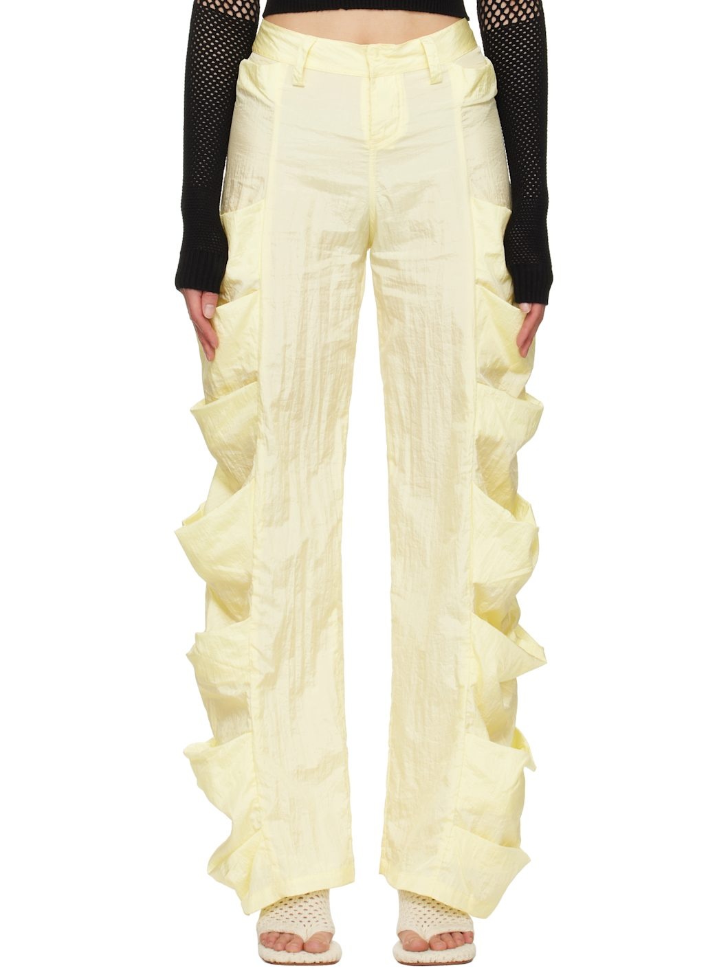 Handcrafted nylon taffeta trousers. · Belt loops · Two-pocket styling · Button fly · Draped patch pockets at outseams Supplier color: Banana 100% nylon. Made in Indonesia 251541F087000