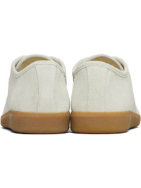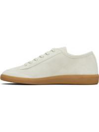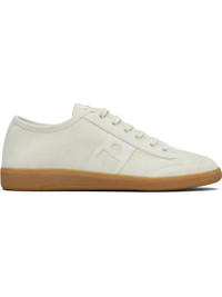 Low-top calfskin suede sneakers. · Lace-up closure · Logo patch at padded tongue · Logo applique at outer side · Canvas lining · Treaded rubber sole Supplier color: Chalk Upper: calfskin. Sole: rubber. Made in Portugal 252600F128004