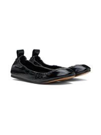 Crinkled patent leather ballerina flats in black. · Elasticized collar · Pull-loop and logo plaque at heel collar · Buffed calfskin lining · Leather sole with rubber injection · Antiqued gold-tone hardware Supplier color: Black Upper: leather. Sole: leather, rubber. Made in Portugal 242600F118005
