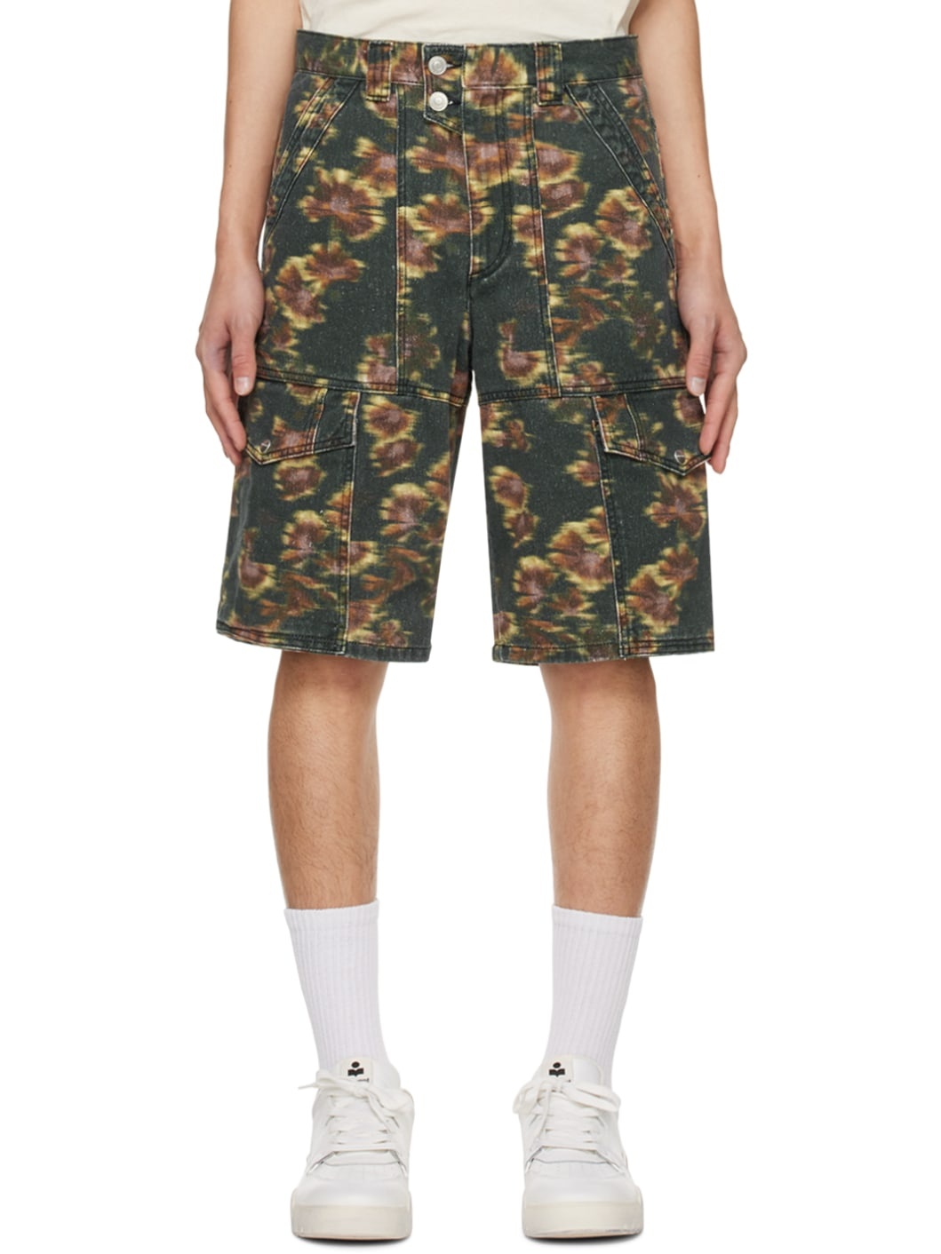 Non-stretch organic cotton- and hemp-blend denim shorts. Floral pattern printed throughout. · Belt loops · Four-pocket styling · Zip-fly · Flap pocket at legs · Leather logo patch at back waistband Supplier color: Faded black 80% organic cotton, 20% hemp. Made in Tunisia 241600M193009