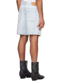 Non-stretch denim shorts. · Belt loops · Five-pocket styling · Zip-fly · Leather logo patch at back waistband · Logo-engraved silver-tone hardware · Contrast stitching in tan Supplier color: Light Blue Body: 100% cotton. Lining: 65% polyester, 35% cotton. Made in Morocco 251600M193002