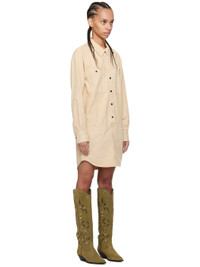 Cotton chambray dress. Fading throughout. · Spread collar · Partially offset button closure · Patch pockets · Curved hem · Seam pockets · Dropped shoulders · Single-button barrel cuffs · Twin pleats at back yoke Supplier color: Sand 100% cotton. Made in Tunisia 241599F052018
