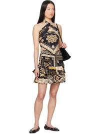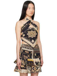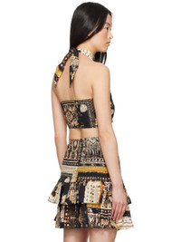 Cotton voile camisole. Graphic pattern printed throughout. · Criss-crossing self-tie halter strap · Straight neck · Handkerchief hem · Shirring at back Supplier color: Black/Ochre 100% cotton. Made in India 251599F111001