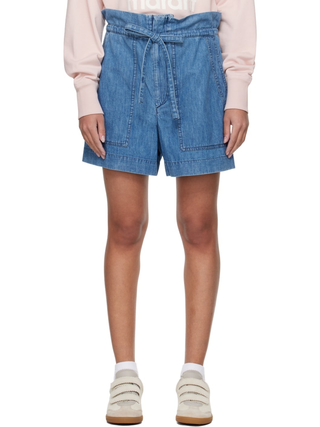 Straight-leg cotton chambray shorts. Fading throughout. · Drawstring at elasticized waistband · Four-pocket styling · Zip-fly · Contrast stitching in navy Supplier color: Blue 100% cotton. Made in Tunisia 241599F088005