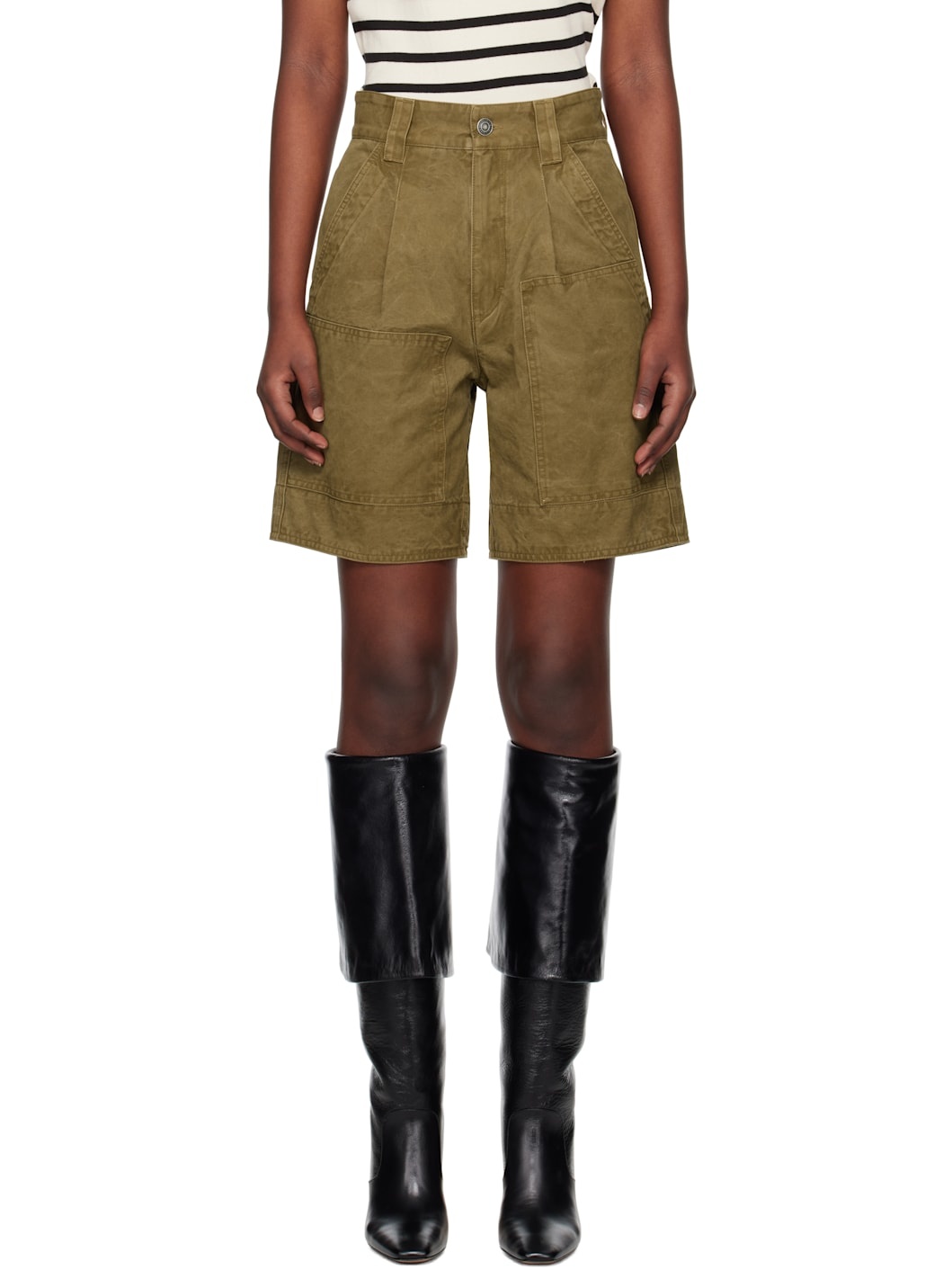 Treated cotton canvas shorts. Fading throughout. · Belt loops · Four-pocket styling · Zip fly · Pleats at front Supplier color: Light bronze 100% cotton. Made in Tunisia 251599F088007