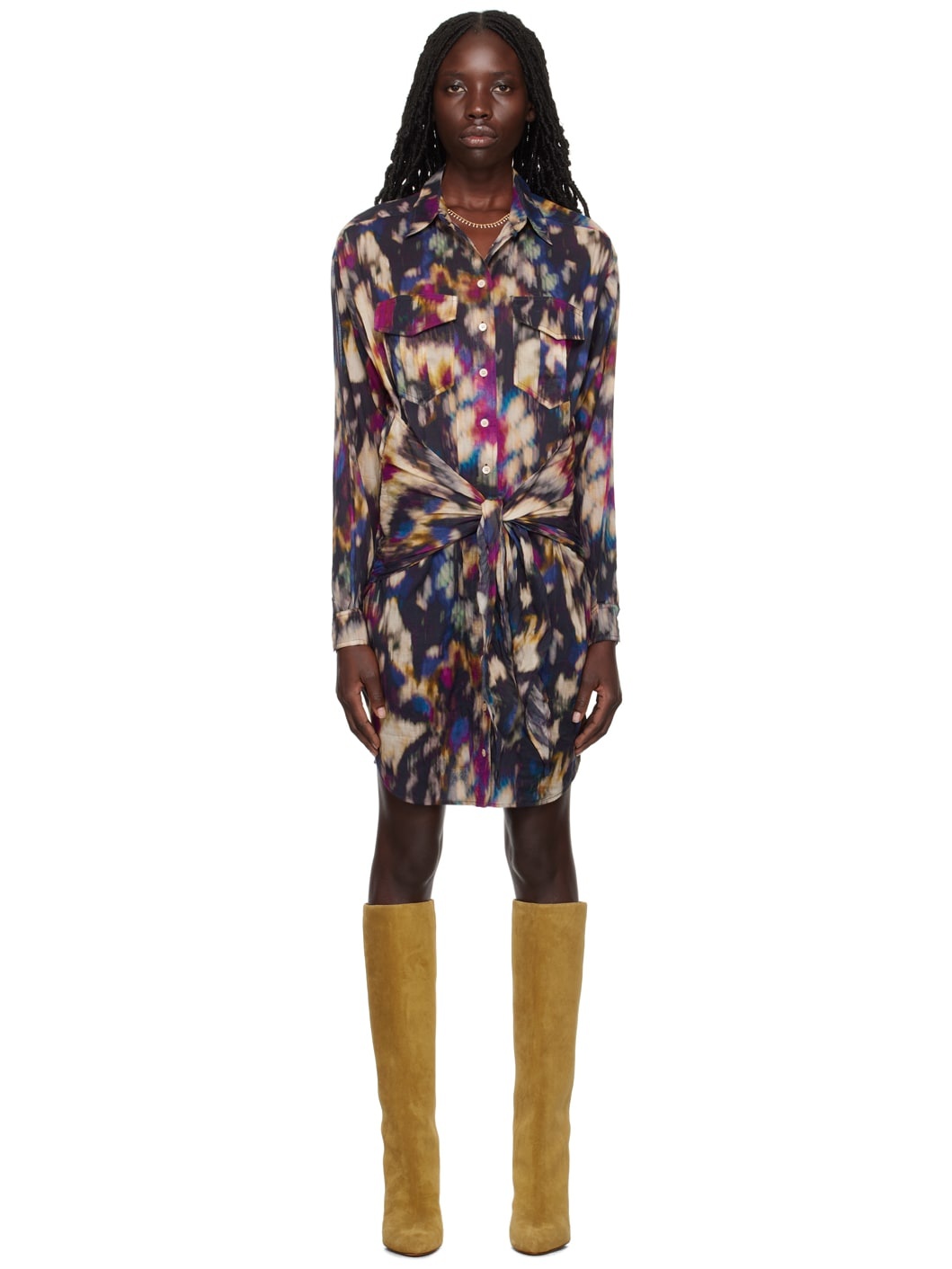 Double-faced cotton voile dress. Graphic pattern printed throughout. · Spread collar · Button closure · Flap pockets at chest · Shirttail hem · Integrated self-tie straps at side seams · Single-button barrel cuffs · Gathering at back · Logo-engraved hardware Supplier color: Ochre/Black 100% cotton. Made in India 241599F052011