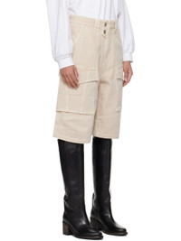 Wide-leg non-stretch organic cotton- and hemp-blend denim shorts. Fading and whiskering throughout. · Belt loops · Four-pocket styling · Zip-fly · Flap pocket at legs · Leather logo patch at back waistband Supplier color: Ecru 80% organic cotton, 20% hemp. Made in Morocco 241599F088008