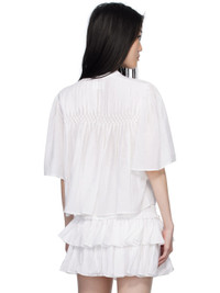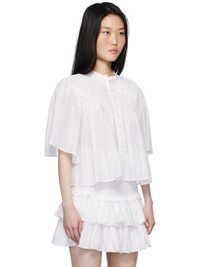 Semi-sheer cotton-blend voile blouse. Pleats and smocking throughout. · Band collar · Eight-button placket · Cropped hem Supplier color: White 80% cotton, 20% viscose. Made in India 251599F107020