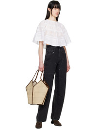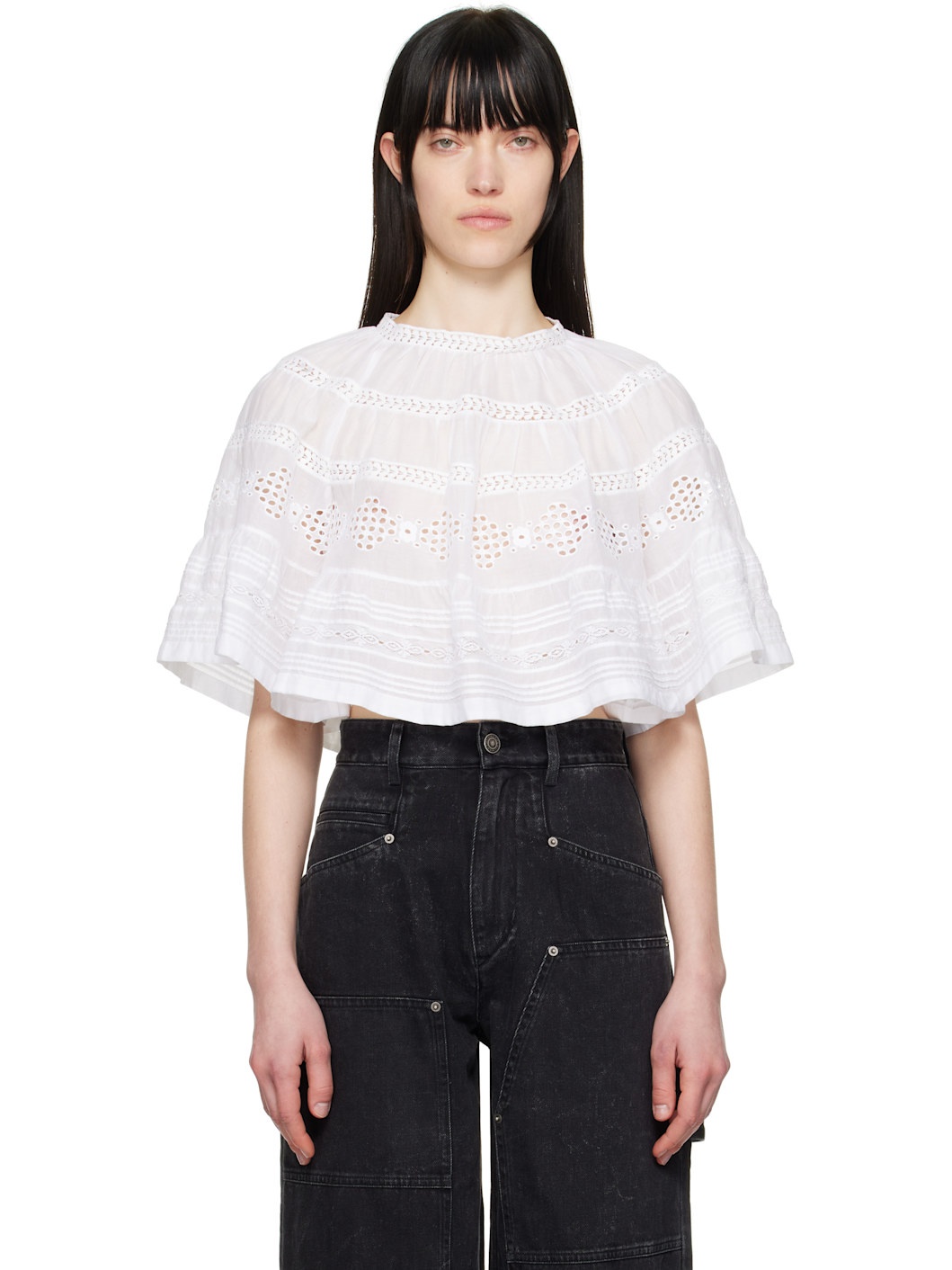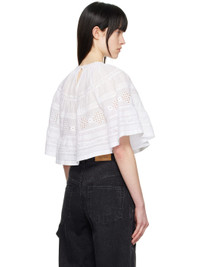 Cotton poplin blouse. Lace trim, gathering, and embroidered detailing throughout. · Button fastening at crewneck · Raglan sleeves Supplier color: White Body: 100% cotton. Trim: 100% cotton. Made in India 251599F107004