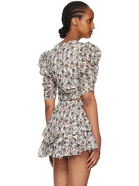Plain-woven cotton blouse. Ruching and floral pattern printed throughout. · Sweetheart neck · Cropped hem · Puff sleeves · Zip closure at back · Fully lined Supplier color: Khaki 100% cotton. Made in India 231599F107001