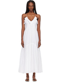 Cotton-blend voile maxi dress. · Ladder lace trim throughout · Ruffled trim at V-neck · Gathering at skirt · Fixed spaghetti straps · Racer back · Full cotton voile lining Supplier color: White Body: 80% cotton, 20% viscose. Lining: 100% cotton. Made in India 261599F055003