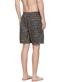 Plain-woven polyester shorts. Graphic pattern printed throughout. · Self-tie drawstring at elasticized waist · Three-pocket styling · Partial nylon mesh brief-style lining Supplier color: Black/Orange Body: 100% polyester. Lining: 100% polyamide. Made in Tunisia 231600M193027
