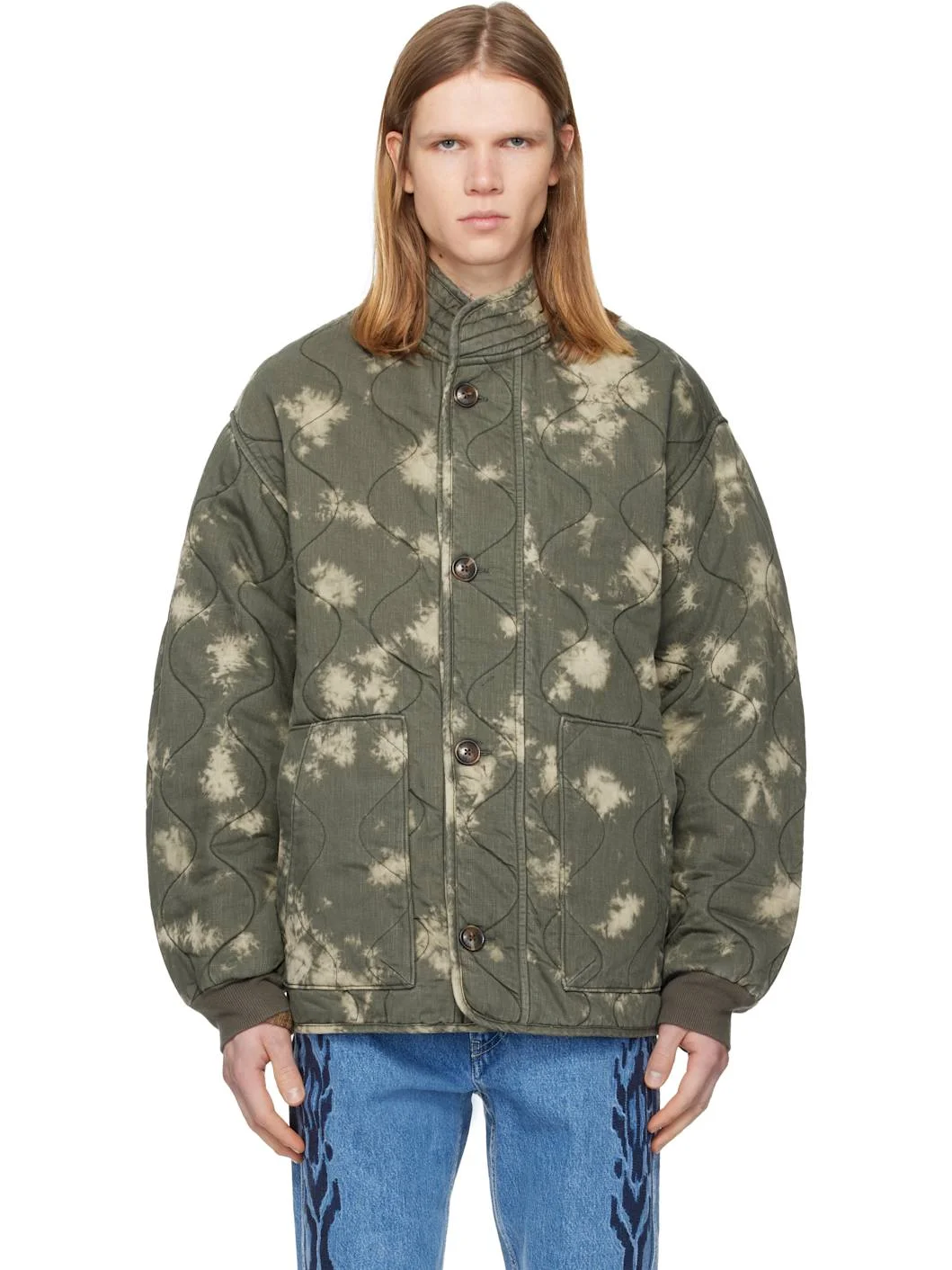Insulated and quilted cotton chambray coat. · Fading throughout · Quilted stand collar · Button closure · Patch pockets at waist · Dropped shoulders · Rib-knit cuffs · Cotton chambray lining · Logo-engraved hardware Each item is unique. Please note coloration may vary. Supplier color: Light khaki Body: 100% cotton. Lining: 100% cotton. Fill: 100% polyester. Made in India 261600M177002