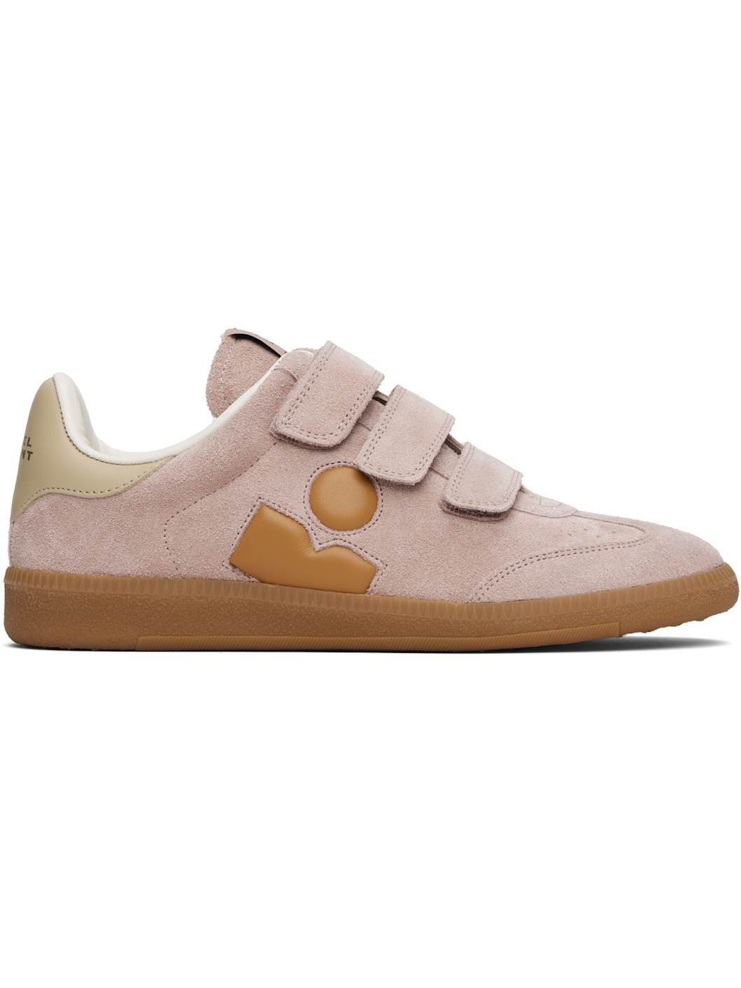 Low-top calfskin suede sneakers. · Perforated detailing at toe · Velcro closure · Logo patch at padded tongue · Padded collar · Inset logo at outer side · Logo stamp at heel tab · Terrycloth lining · Treaded rubber sole Supplier color: Faded pink/Honey Upper: calfskin. Sole: rubber. Made in Portugal 252600F128007