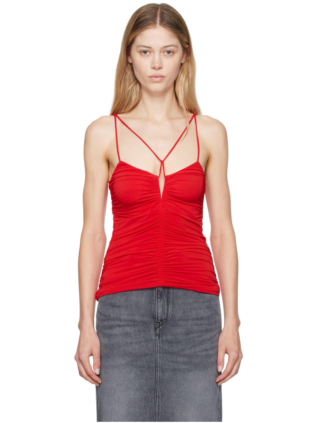 Stretch viscose jersey camisole. Ruching throughout. · Boning at V-neck · Criss-crossing spaghetti straps Supplier color: Red 92% viscose, 8% elastane. Made in Portugal 242600F111005