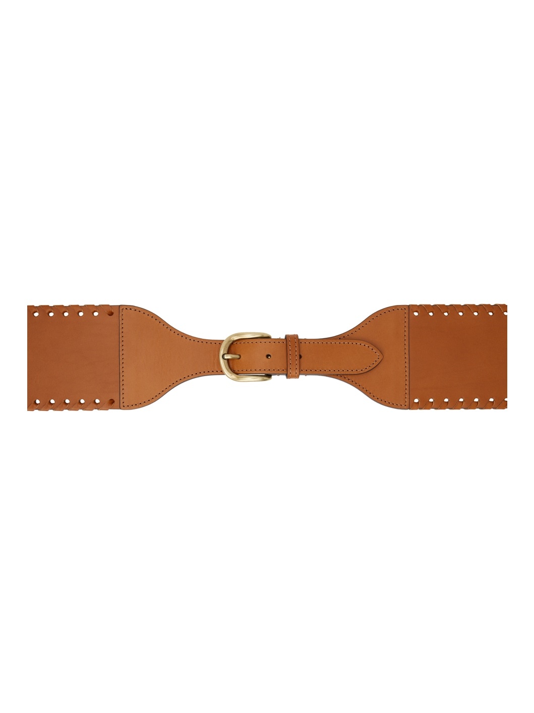 Buffed leather belt in tan. Braided detailing throughout. · Pin-buckle fastening · Logo-engraved antiqued gold-tone hardware Supplier color: Natural Leather. Made in Italy 231600F001015