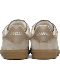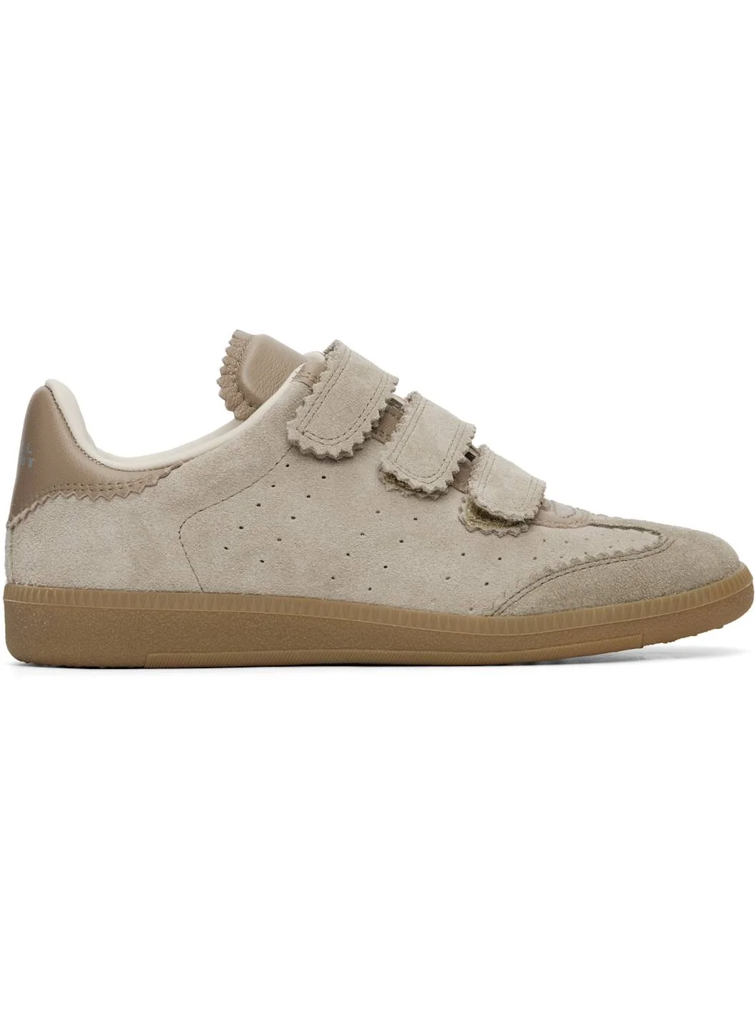 Low-top suede sneakers. · Serrated edges throughout · Perforated detailing at toe and sides · Velcro closure · Padded tongue and collar · Logo stamp at heel tab · Buffed sheepskin and terrycloth lining · Treaded rubber sole Supplier color: Taupe Upper: leather. Sole: rubber. Made in Portugal 261600F128002