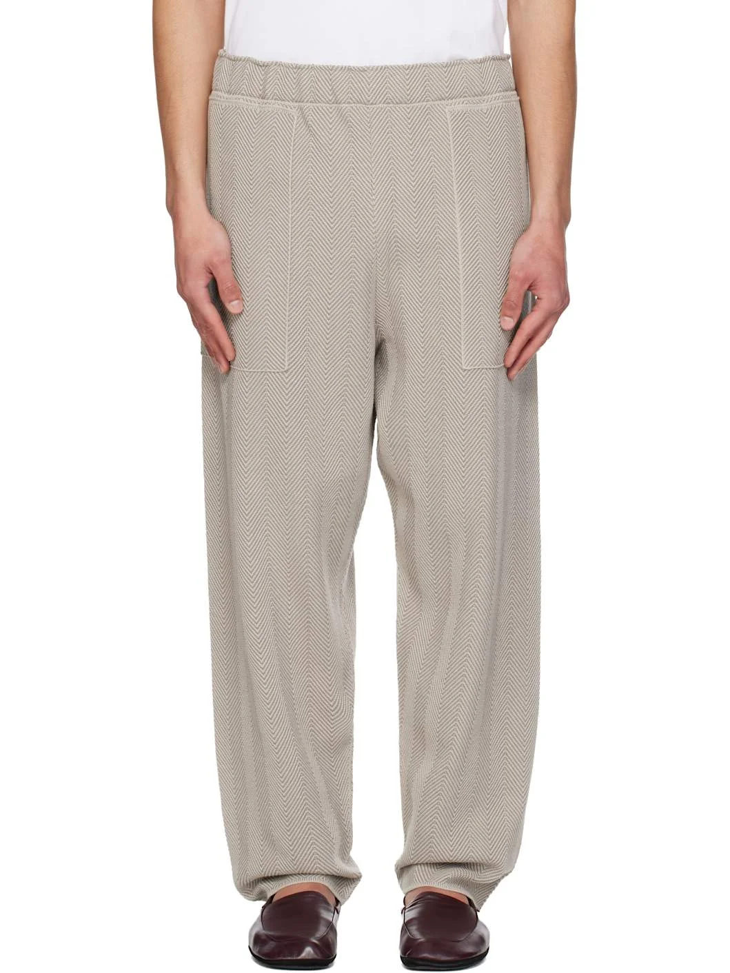 Textured knit trousers. · Herringbone pattern throughout · Concealed drawstring at elasticized waistband · Two-pocket styling Supplier color: Beige 100% polyester. Made in Japan 261729M191045