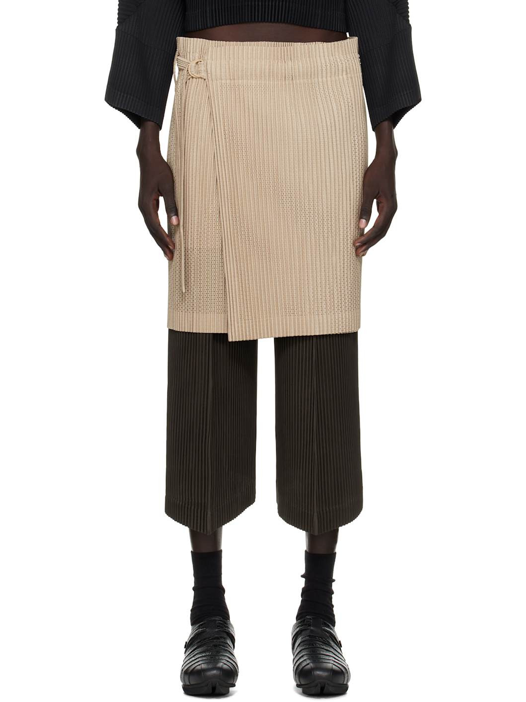 Garment-pleated tricot miniskirt. · Perforations throughout · Quick-drying · Wrap construction · Belt loops and integrated cinch belt · Elasticized waistband · Two-pocket styling Supplier color: Beige 100% polyester. Made in Japan 252729M191008