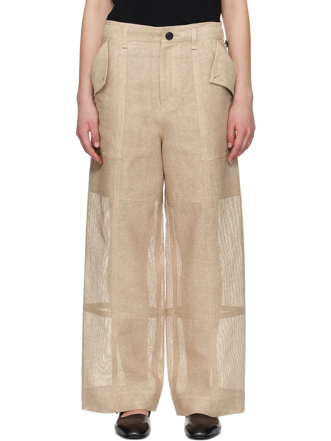 Semi-sheer paper- and ramie-blend mesh trousers. · Straight-leg · Belt loops · Four-pocket styling · Zip fly · Button fastening at front pockets · Webbing seams at interior Supplier color: Cedar brown Body: 45% paper, 38% ramie, 17% cotton. Trim: 100% cotton. Lining: 45% paper, 38% ramie, 17% cotton. Made in Japan 252809F087000