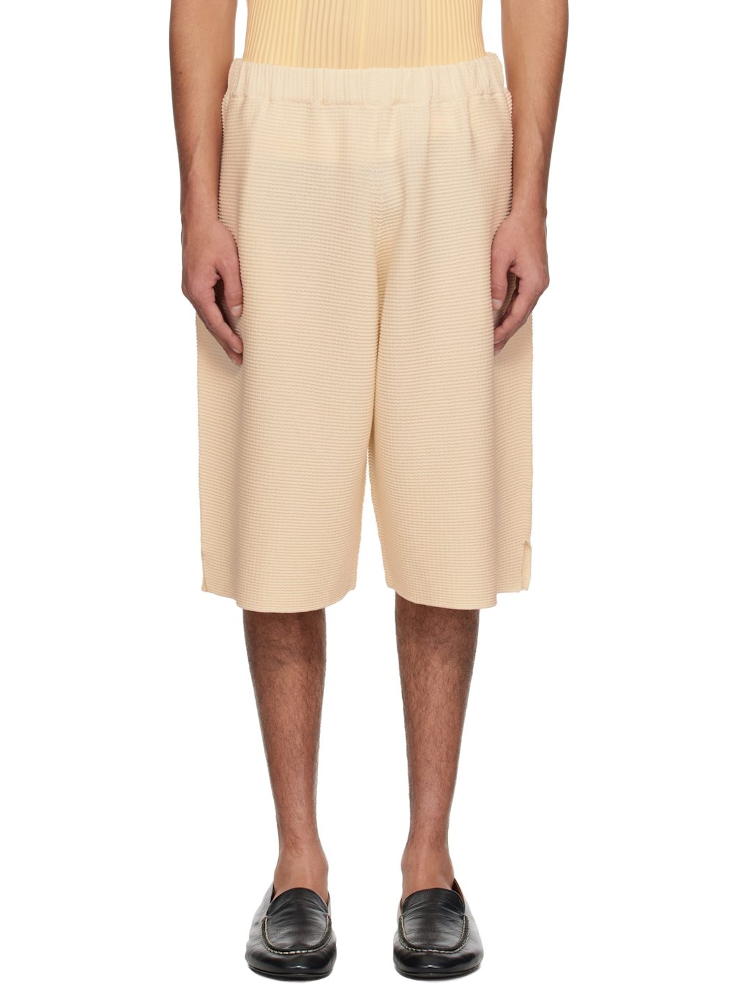 Textured knit organic cotton shorts. · Concealed drawstring at elasticized waistband · Two-pocket styling · Vented cuffs Supplier color: Beige 100% cotton. Made in Japan 251729M193003