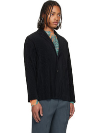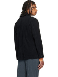 Garment-pleated polyester tricot blazer. · Notched lapel · Button closure · Buttoned barrel cuffs · Central vent at back hem Supplier color: Black 100% polyester. Made in Philippines 252729M195012