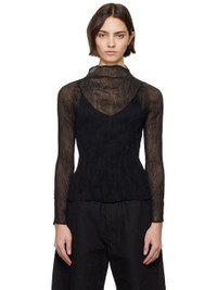 Sheer garment-pleated recycled polyester chiffon turtleneck. Raglan sleeves. Supplier color: Black 100% recycled polyester. Made in Japan 252809F099004