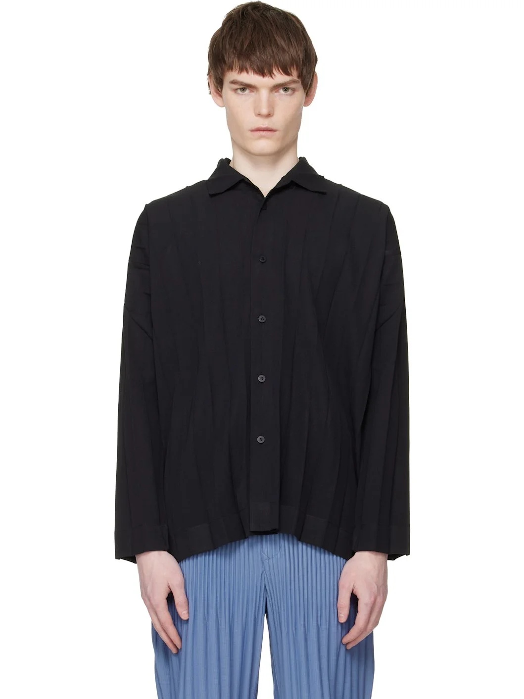 Garment-pleated twill shirt. · Spread collar · Button closure · Vented side seams · Dropped shoulders Supplier color: Black 100% polyester. Made in Philippines 261729M192016