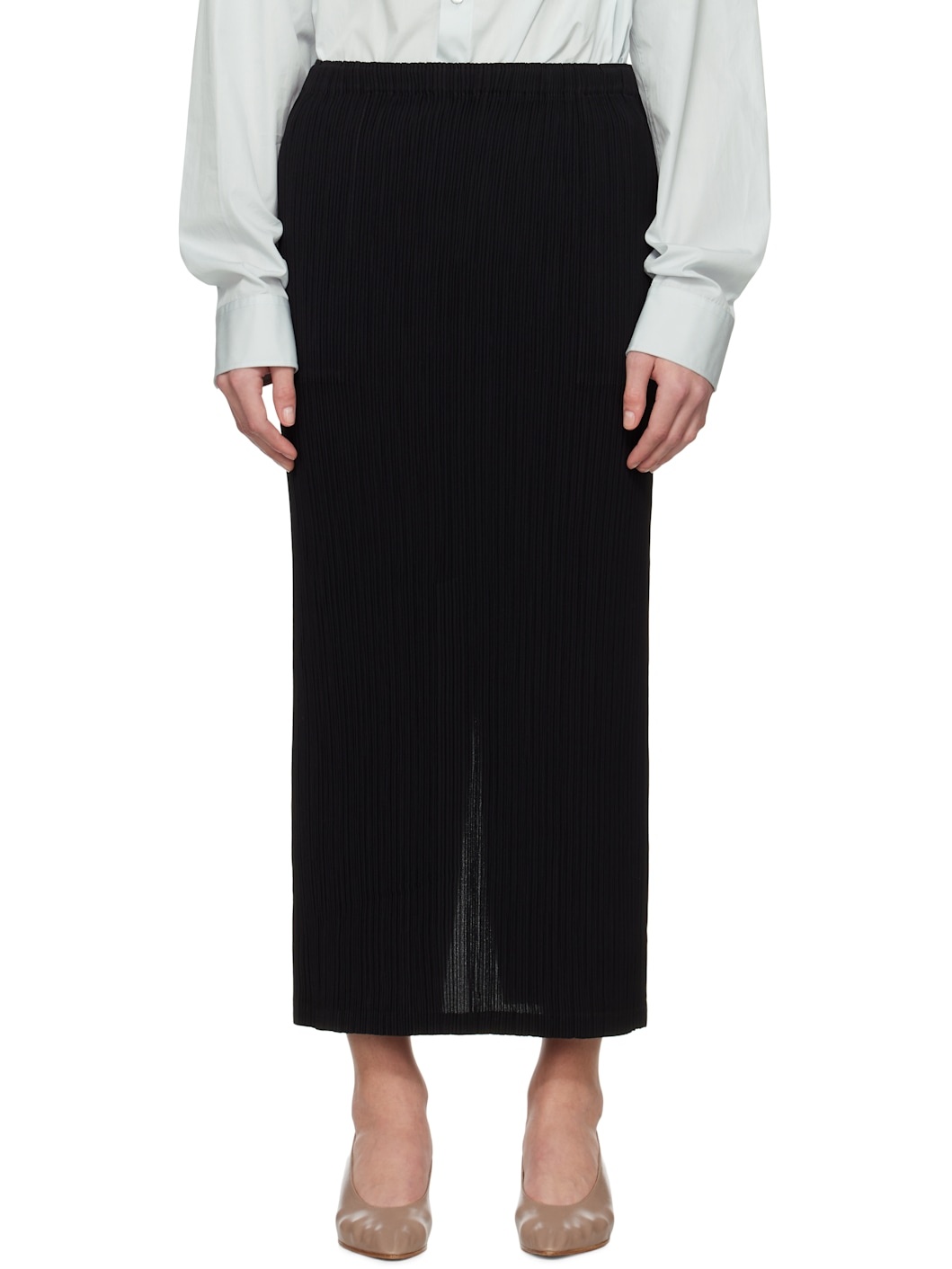 Garment-pleated recycled polyester tricot maxi skirt. · Elasticized waistband · Two-pocket styling · Central vent at back hem Supplier color: Black 100% recycled polyester. Made in Japan 252809F093001