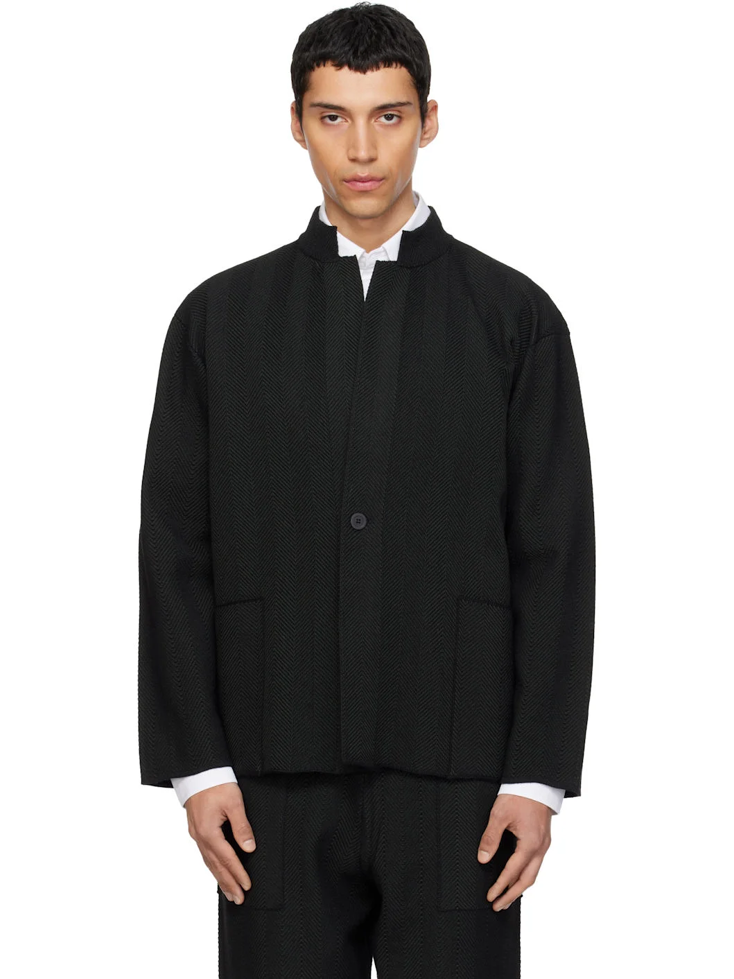 Textured knit jacket. · Herringbone pattern throughout · Stand collar · Single-button closure · Patch pockets at waist · Central vent at back hem Supplier color: Black 100% polyester. Made in Japan 261729M180012