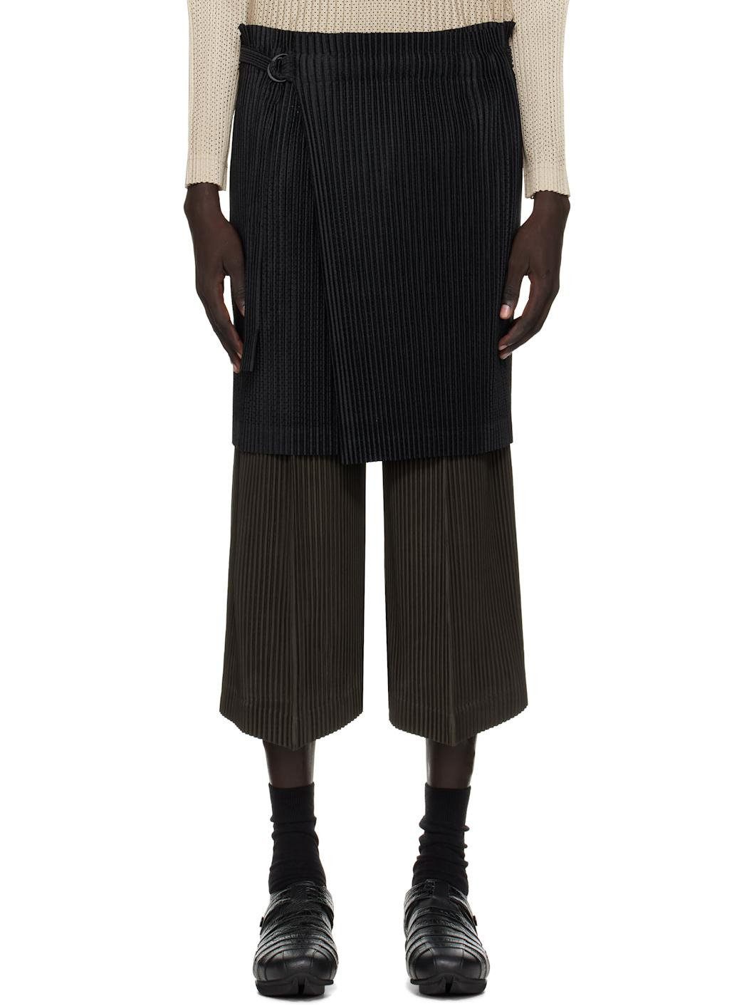 Garment-pleated tricot miniskirt. · Perforations throughout · Quick-drying · Wrap construction · Belt loops and integrated cinch belt · Elasticized waistband · Two-pocket styling Supplier color: Black 100% polyester. Made in Japan 252729M191007