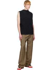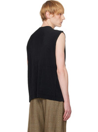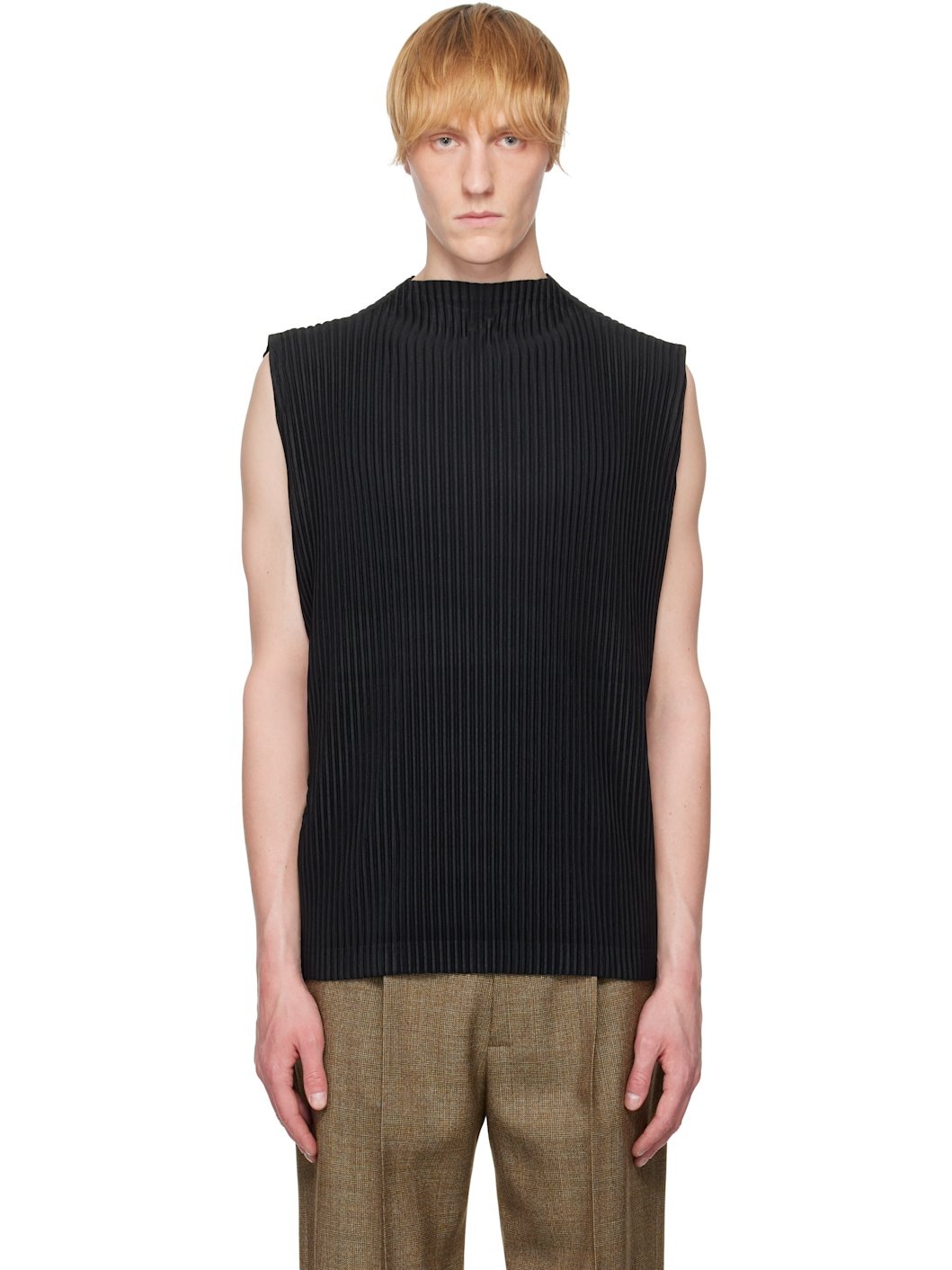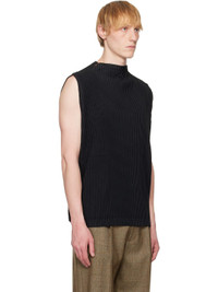 Garment-pleated polyester tricot tank top. · Quick-drying · Vents at mock neck · Seam pockets Supplier color: Black 100% polyester. Made in Japan 251729M214001