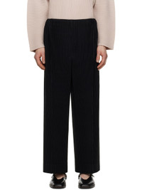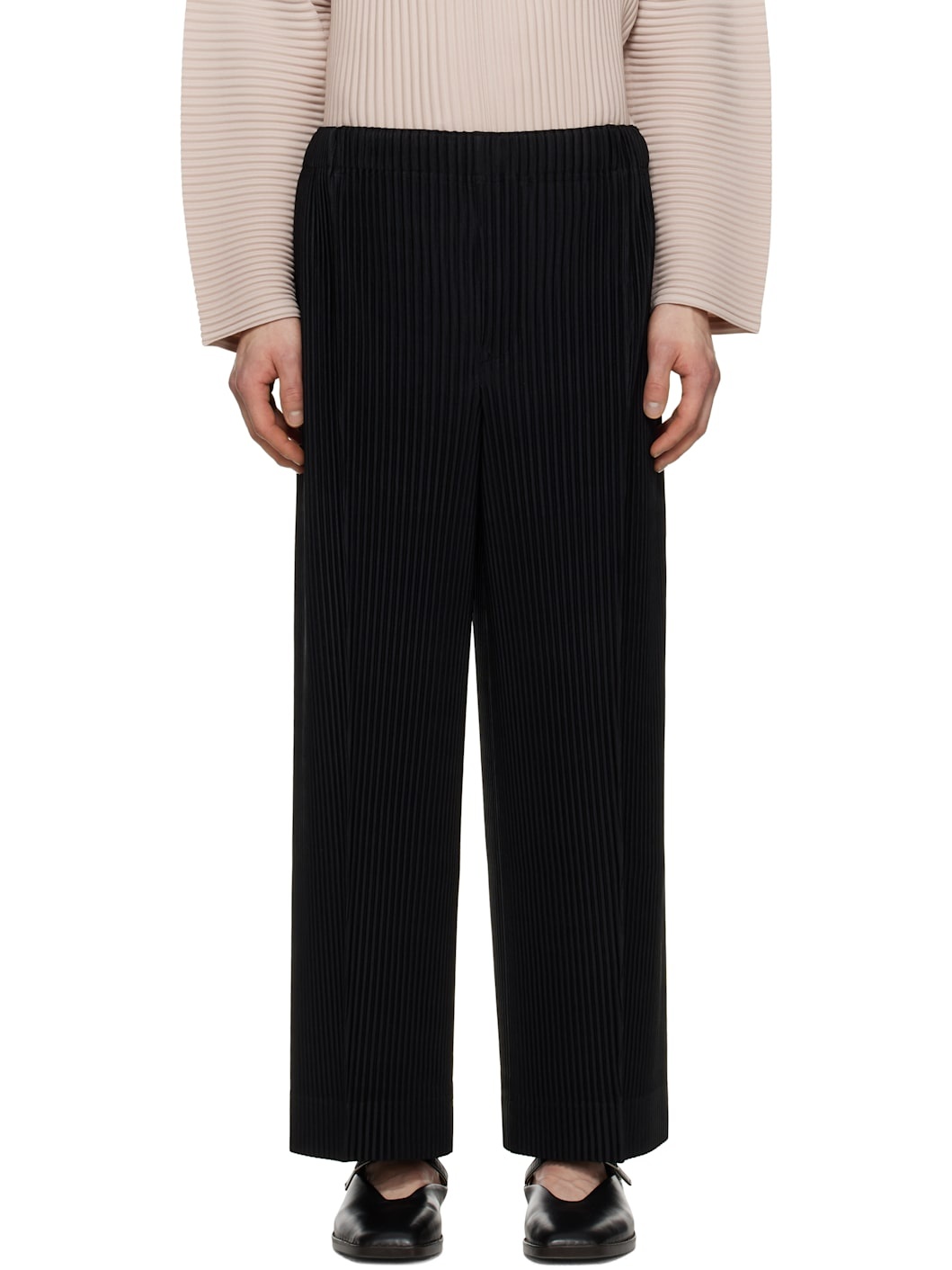 Wide-leg garment-pleated polyester tricot trousers. · Lightweight and quick-drying · Concealed drawstring at elasticized waistband · Two-pocket styling · Button fly · Creased legs Supplier color: Black 100% polyester. Made in Japan 251729M191042