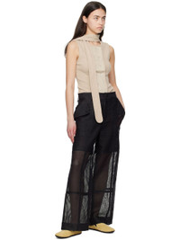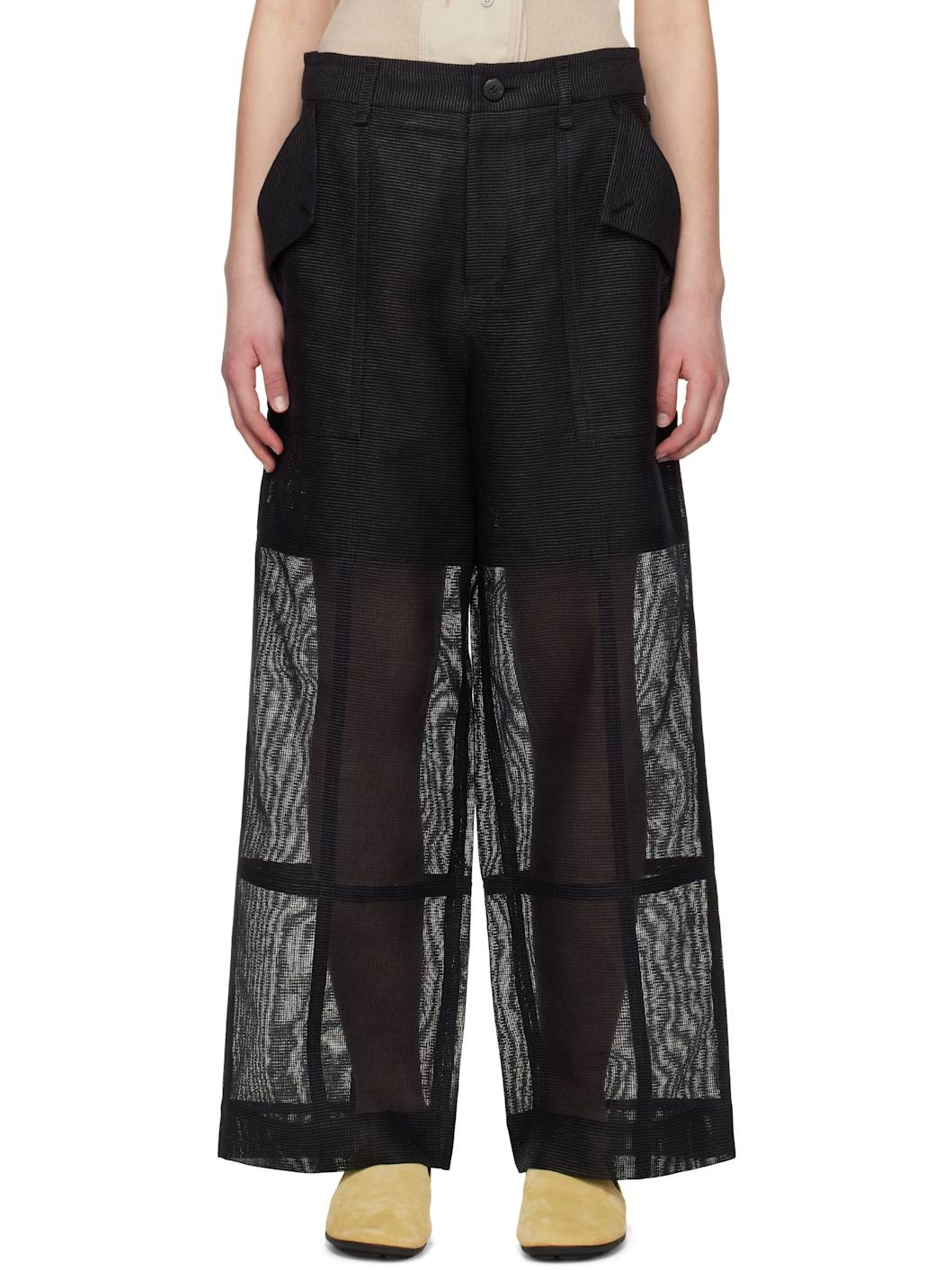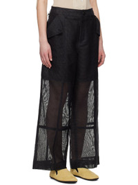 Semi-sheer paper- and ramie-blend mesh trousers. · Straight-leg · Belt loops · Four-pocket styling · Zip fly · Button fastening at front pockets · Webbing seams at interior Supplier color: Black Body: 45% paper, 38% ramie, 17% cotton. Trim: 100% cotton. Lining: 45% paper, 38% ramie, 17% cotton. Made in Japan 252809F087007