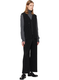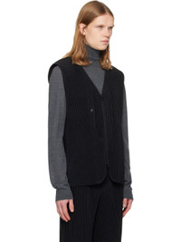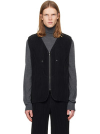 Garment-pleated tricot vest. · V-neck · Two-way zip closure · Welt pockets at chest · Seam pockets at waist Supplier color: Black 100% polyester. Made in Philippines 261729M185000