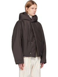 Insulated recycled nylon taffeta jacket. · Concealed press-stud closure · Welt pockets at waist · Partially elasticized hem · Dolman sleeves · Patch pockets at interior · Satin lining · Silver-tone hardware Supplier color: Brown Body: 100% nylon. Lining: 100% polyester. Fill: 100% polyester. Made in Japan 261729M178001